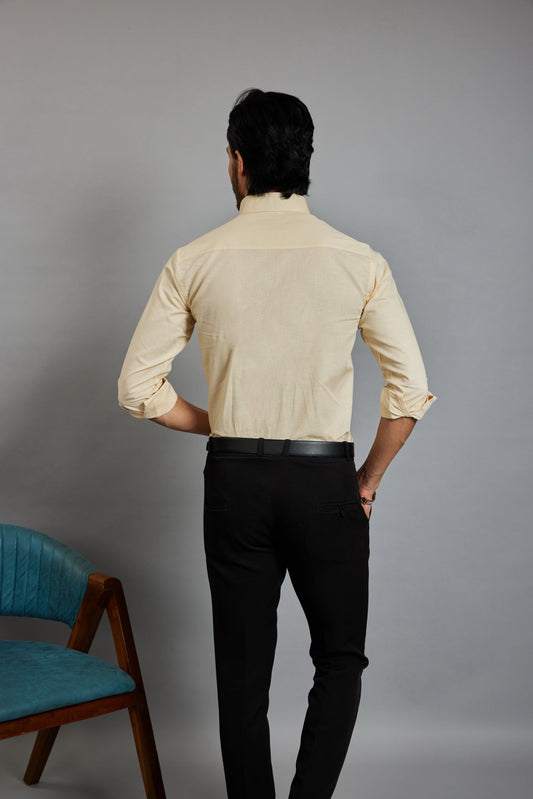Men’s Classic Linen Shirt – Buttercream (Full Sleeve)