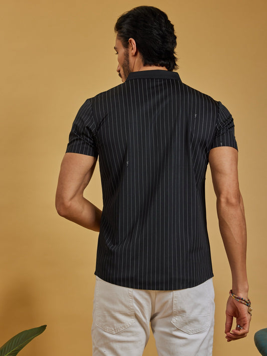 men's Jet Black Premium Nylon Stitchless Half Sleeve Shirt