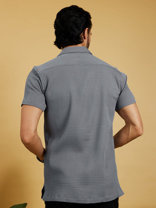 Men's Popcorn Textured Shirt – Dusty Blue | Open Collar | Half Sleeve | Resort - Beach Style