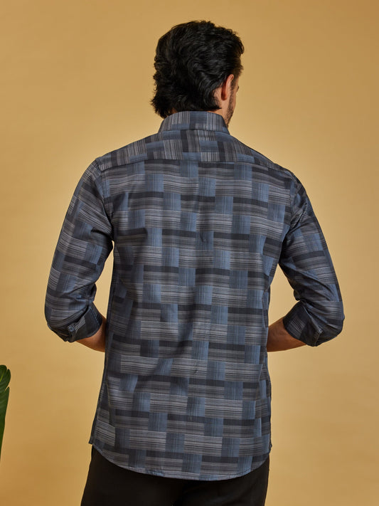 Men's Premium Cotton Jacquard Weave Shirt – Charcoal Checks Full Sleeve | No Pocket