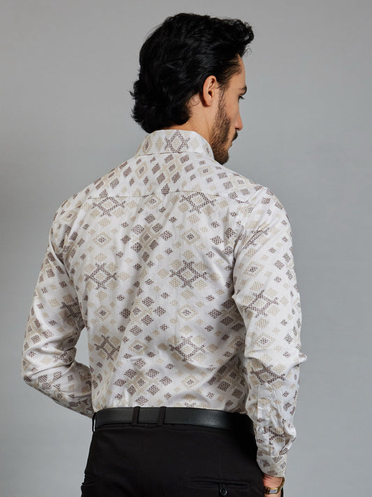Men's Premium Cotton Jacquard Weave Shirt – Beige & Coffee Full Sleeve No Pocket