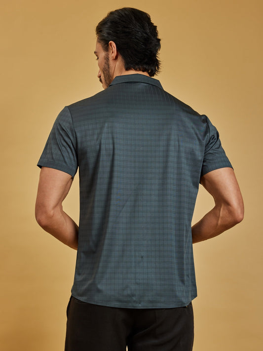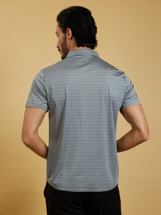 Men’s Stitchless Half Sleeve Shirt Steel Grey Box Checks with Pocket