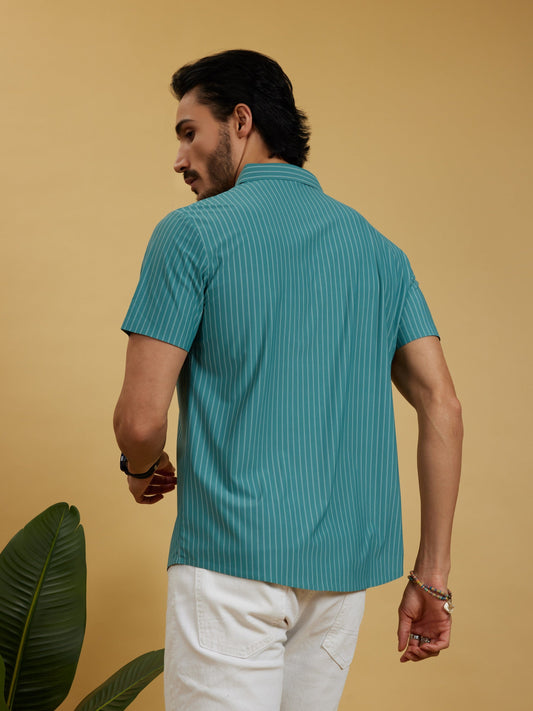 Men’s Stitchless Half Sleeve Shirt Premium Nylon, Lightweight (Sea Green Stripes)