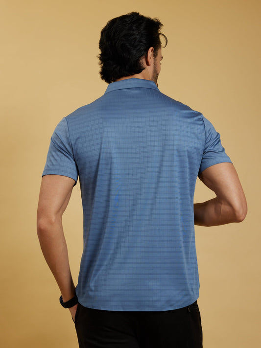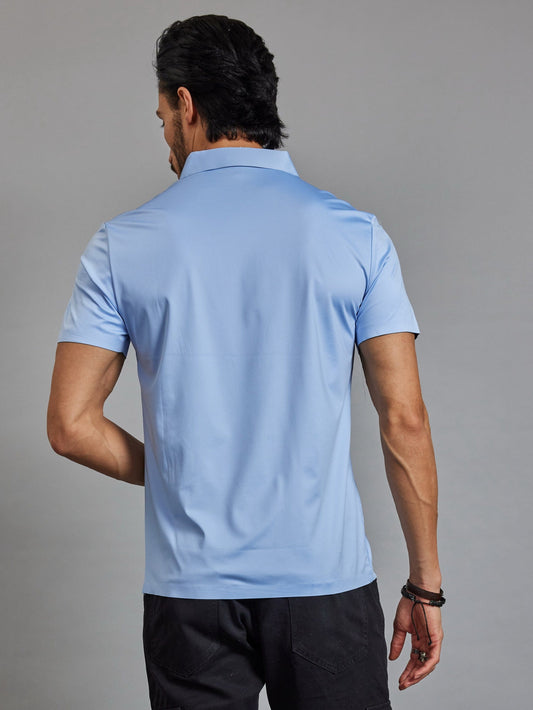 Men’s Sky Blue Stitchless Polo T-Shirt – No Pocket Premium Nylon, 3-Button Placket